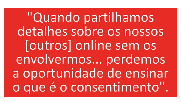 “Quando partilhamos detalhes sobre os nossos [outros] online sem os envolvermos… perdemos a oportunidade de ensinar o que é o consentimento”.